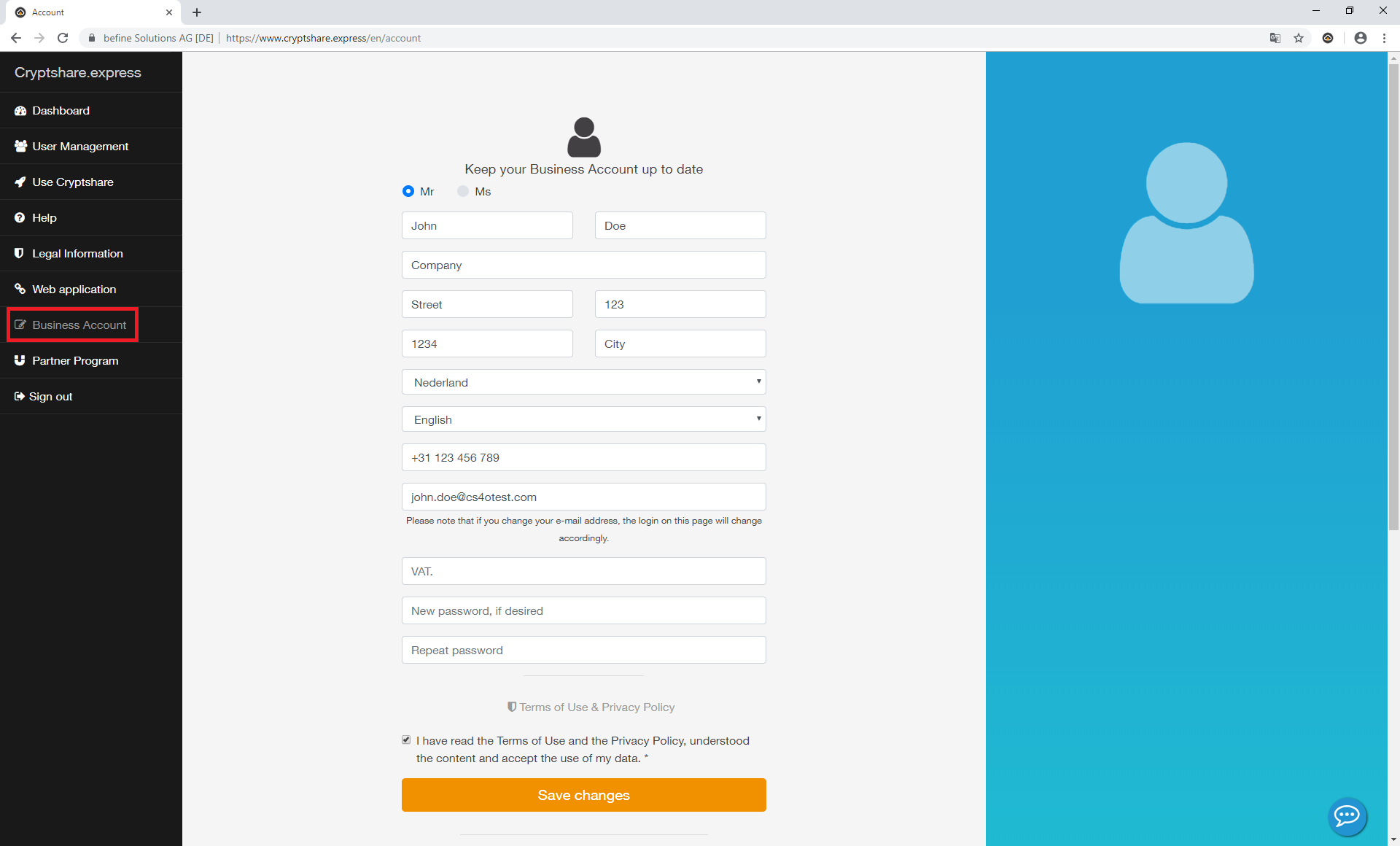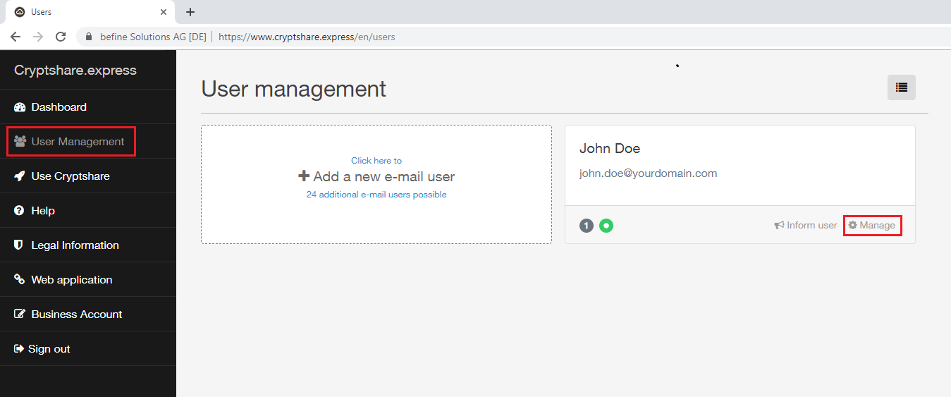 - In addition to the actual business account that you use to manage your subscriptions, you can also create Cryptshare.express email users. To be able to use Cryptshare.express, you must have created at least one user.